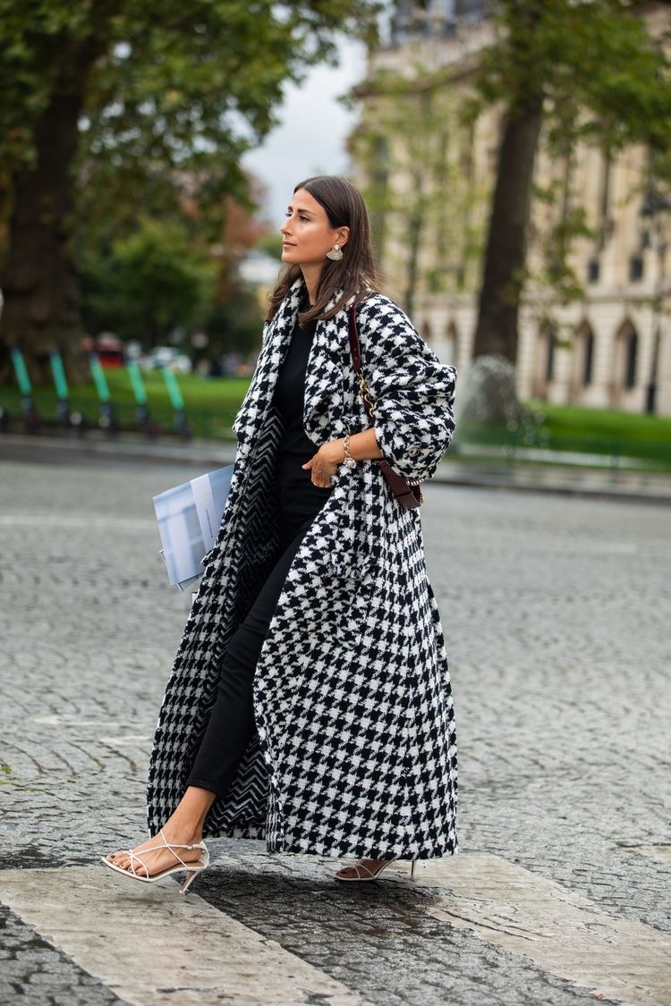 흰색 바탕에 검정 무늬가 대표적이며 캐주얼한 분위기를 연출할 수 있고 니트와 아우터에서 많이 볼 수 있으니 올가을에도 하운드투스 패턴으로 입어보아요