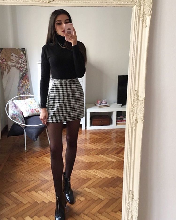 짧은 기장의 미니스커트와 스웨터는 아우터 없이 단품으로 입어도 예쁜데 이때 상의는 핏되는 골지티, 목폴라도 좋지만 박시한 니트랑 입어도 예쁩니다