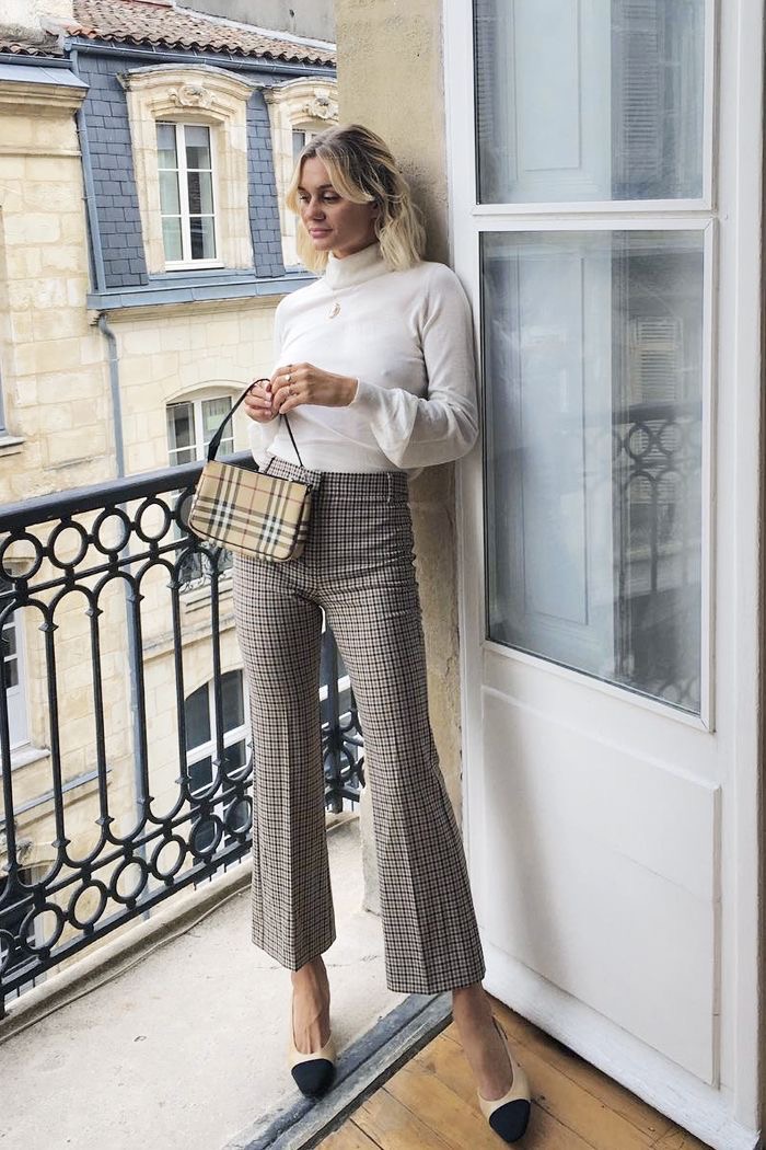 그런 그녀가 자주 입는 스타일은 블라우스와 하이웨이스트 스타일의 하의의 조합입니다