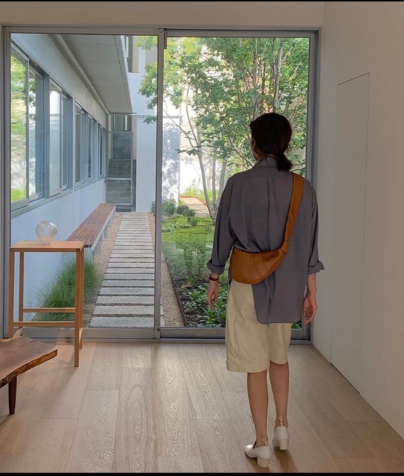 수수한 차림의 룩이지만 가방은 전혀 수수하지 않은 가격입니다. 유행 없이 꾸준히 인기 많은 르메르 범백입니다. 벌써 스몰, 라지, 컬러도 다양하게 르메르 범백을 수차례 들고 나온 차정원. 비록 가격은 사악하지만 몸에 착 감기는 게 어디에나 잘 어울리는 가방입니다. 타바코 브라운 가을 날씨에도 딱이고 무심히 빼놓은 셔츠와도 잘 어울립니다. 168cm의 차정원 님은 마른 체형이라 어중간한 기장의 팬츠도 잘 어울리네요 부럽다