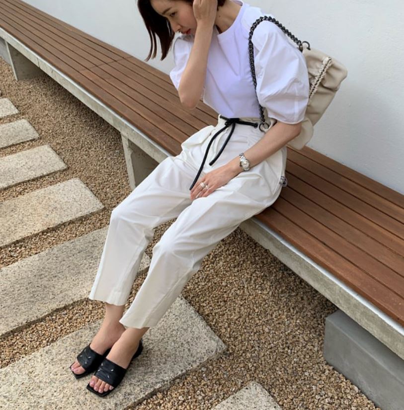 차분한 무드가 느껴지는 브라운 컬러의 브이넥 블라우스와 화이트 팬츠를 매치했습니다. 거기다 플립플랍 스타일의 샌들 힐을 신어 캐주얼하면서도 오피스룩으로 활용 가능한 스타일링을 했습니다. 저는 여름에 주로 블라우스와 셔츠를 입는 편인데 흰색 팬츠 하나 있으면 여기저기 코디가 유용하더라고요 이 코디도 출근할 때 참고하기 좋은 코디입니다. 마지막 가방까지 포인트로 딱! 블라우스는 otis 제품으로 7만 원대의 저렴한 가격 덕분에 빠르게 품절이 됐고 슈즈는 지안비토 로시 제품입니다.
