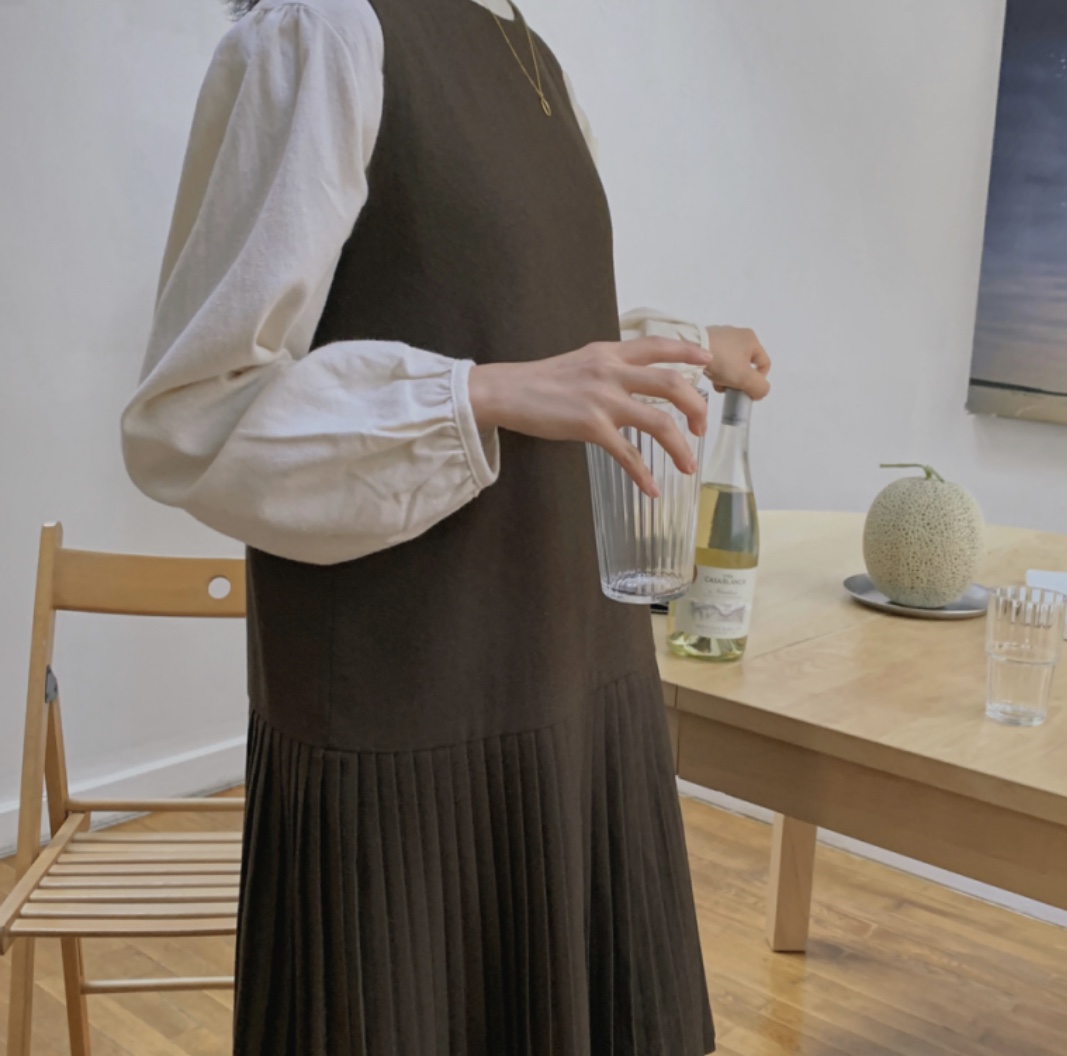 겨울 코디 중 코트나 패딩 안에 입기 좋은 코디로 니트+원피스의 조합도 많이 볼 수 있습니다. 니트, 니트조끼와 매치하기 좋은 원피스는 무엇이 있을까요?! 제가 생각했을 땐 소재는 촤르르 떨어지는 가벼운 소재가 아닐까 싶습니다. 소재가 빳빳하고 신축성이 없는 소재와 루즈핏의 원피스는 루즈한 니트와 매치하면 니트가 붕 떠서 더 부해보일수가 있습니다. 그러니 가급적 가벼운 소재가 좋겠죠?!