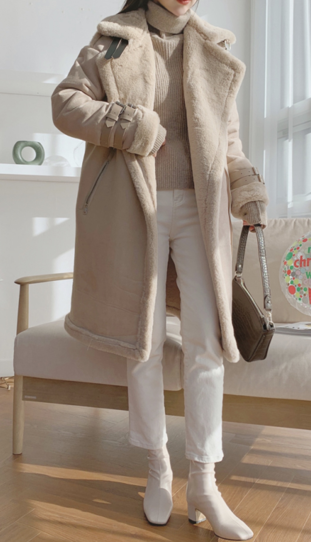 퀼팅 디테일로 제작되어 따뜻하면서도 착용이 가벼운 퀼팅 패딩은 핸드메이드 아우터와 마찬가지로 지금 입기 좋은 아우터입니다. 이런 패딩은 유행타지 않고 매해 꺼내 입기 좋죠. 겨울에 또 유행 안 타는 옷이 하나 더 있다면 그것은 바로 무스탕입니다. 무스탕은 도톰하고 포근한 착용감으로 저도 한겨울에도 입는 그런 아우터입니다. 특히 무릎까지 덮는 기장감으로 보온성도 최고 최고🤍