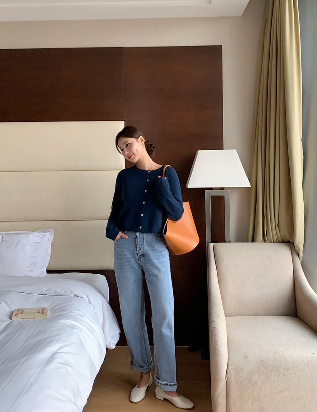 숏기장의 카디건, 재킷, 티셔츠 등의 상의와