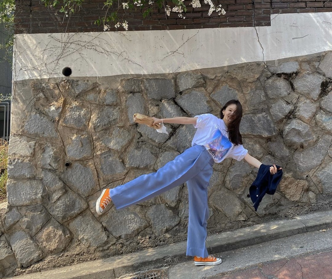 특히 강민경은 와이드 팬츠와 컨버스를 자주 매치해서 입던데 편안하지만 포멀한 룩입니다